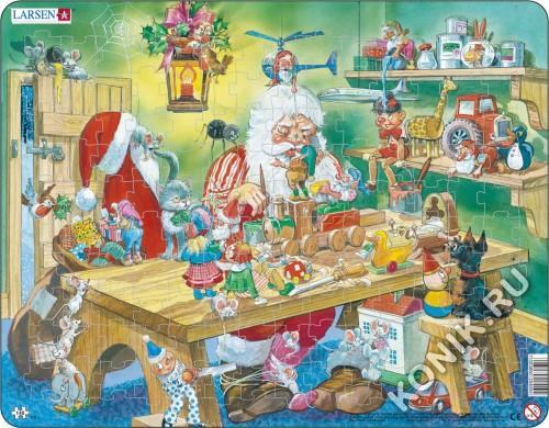 Веселый Санта Клаус с огромным мешком подарков доставит удовольствие как малышам, так и детям более старшего возраста. Многообразие форм вырубки и различные размеры отдельных элементов способствуют ра... Показать описаниезвитию мелкой моторики у малышей. Сделанные из высококачественного трехслойного картона, они не деформируются и легко берутся в руки. Все пазлы снабжены специальной подложкой, благодаря чему их удобно собирать. Пазлы Ларсен - прекрасный подарок к Новому Году и Рождеству. В наборе: 33 элемента пазла. Размер собранного поля - 36,5 х 28,5 см.