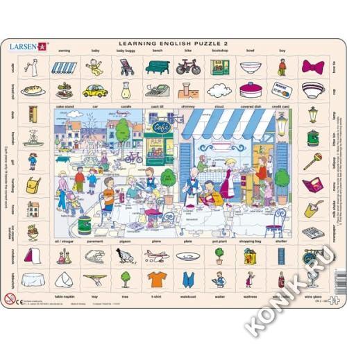 Пазлы Ларсен - это увлекательные обучающие пазлы для всей семьи. Серия "Изучаем Английский" предназначена для детей старше 6 лет. В центре пазла изображен сюжет, где каждый предмет подписан (по-англий... Показать описаниески). Вокруг этого сюжета детям необходимо правильно расположить отдельные предметы. Многообразие форм вырубки и различные размеры отдельных элементов способствуют развитию мелкой моторики у малышей. Сделанные из высококачественного трехслойного картона, детали игры не деформируются и их удобно держать в руках. Все пазлы снабжены специальной подложкой, благодаря чему их удобно собирать. В наборе: 70 элементов пазла. Размер собранного поля - 36,5 х 28,5 см.