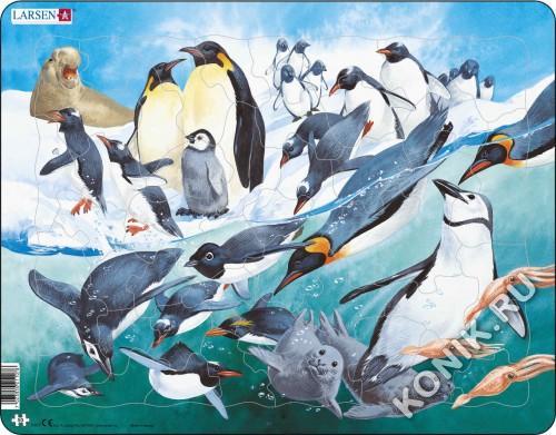 Норвежская фирма Ларсен представляет пазл, на котором представлены обитатели заснеженных материков пингвины. Разнообразные птички и их детеныши будут радовать малыша, когда он соберет вместе все детал... Показать описаниеи. Благодаря яркому развивающему набору у детей формируется образное и логическое мышление, развивается внимание, память. Работа с мелкими деталями тренирует моторику пальцев рук. Детали пазла выполнены из трехслойного картона, не деформируются и удобны для маленьких детских ручек. В наборе: 50 элементов пазла. Размер собранного поля - 36,5 х 28,5 см.