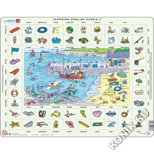 Пазлы Ларсен - это современные обучающие пазлы. Серия Изучаем Английский предназначена для детей от 6 лет. В центре пазла изображен сюжет, где каждый предмет подписан (по-английски). Вокруг этого сюже... Показать описаниета детям необходимо правильно расположить отдельные предметы. Детали различной формы и размеров способствуют развитию мелкой моторики у малышей. Сделанные из высококачественного трехслойного картона, они не деформируются и легко помещаются в руки. Все пазлы снабжены специальной подложкой, благодаря чему их удобно собирать. В наборе: 70 элементов пазла. Размер собранного поля - 36,5 х 28,5 см.