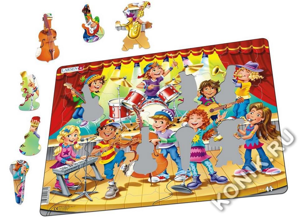 Увлекательный пазл «Музыкальная школа» для организации семейного досуга будет радовать всех малышей. Им будет интересно собирать картинку из маленьких элементов различной формы. В игре формируется лог... Показать описаниеическое мышление, мелкая моторика и пространственные представления. Детали пазла имеют формы инструментов, таких как гитара, бас, виолончель, барабан, труба. Сделанные из высококачественного трехслойного картона, они не деформируются и легко берутся в руки. Все пазлы снабжены специальной подложкой, благодаря чему их удобно собирать. В наборе: 32 элемента. Размер собранного поля - 36,5 х 28,5 см.