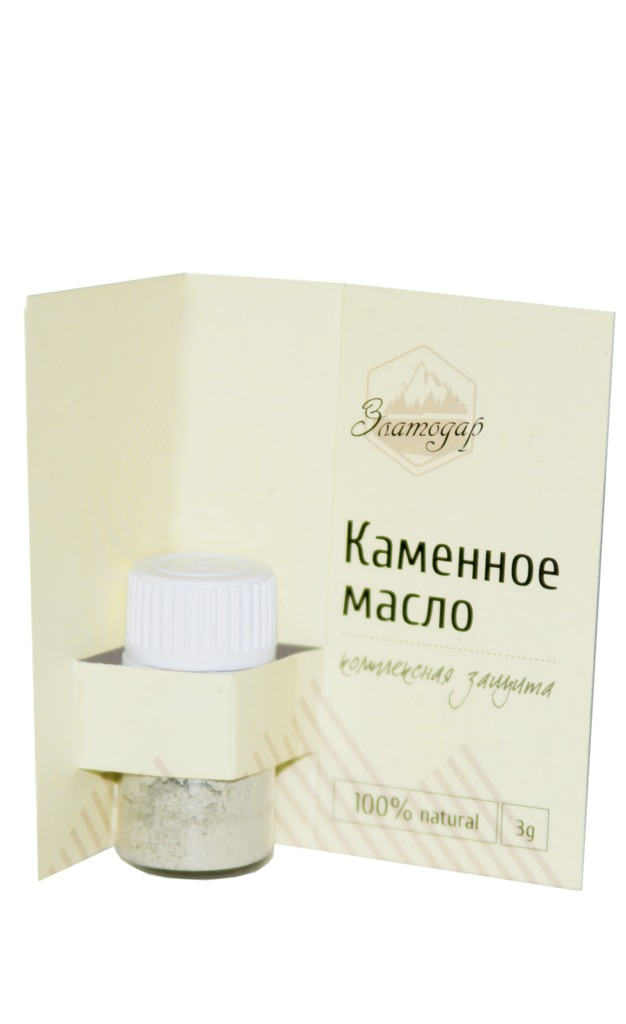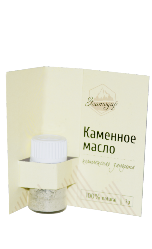 Комплекс из двух легендарных целебных средств Алтая: мумие и каменного масла. Препарат при регулярном приеме демонстрирует отменные общеукрепляющие способности и не только. Помимо того, что камен... Показать описаниеное масло для иммунитета является буквально кладовой запасов нужных «запчастей», данный продукт также будет надежным подспорьем людям самых разных сфер труда – он повышает физическую работоспособность и стимулирует мозговую активность. Состав: каменное масло, мумие. Способ применения: растворить 3 гр. порошка (1/2 чайной ложки) в 3 л прохладной кипяченой воды. Применять за 30 мин до еды 3 раза в день по 150 мл. Срок годности: 24 месяца.