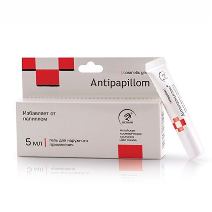 Антипапиллом избавляет от папиллом! На курс потребуется от одной до пяти процедур. Примечание: гель Антипапиллом – гель для наружного применения, препарат индивидуального пользования. Предупреждение:&... Показать описаниеnbsp;не применять гель для ухода за кожей лица, в области паха и подмышек, на молочных железах. Состав: вода очищенная, натрия гидроксид, гелеобразователь. Способ применения: 1. Перед применением геля «Антипапиллом» предварительно распарить ороговевшие* участки кожи. 2. Кожу вокруг проблемных мест смазать вазелином или жирным кремом. 3. Нанести гель на ороговевший (Кожа с избыточным ороговением – папилломы, бородавки. участок кожи, не попадая на здоровую кожу. Средство не смывать минимум 1-2 часа, по возможности оставить на более длительное время. После впитывания средства излишки крема, нанесенного для защиты здоровой кожи, можно пропитать салфеткой. 4. Через 1-2 дня начинается отшелушивание ороговевших участков кожи и на 3-5 день – их очищение. При необходимости можно провести повторную процедуру, но не ранее чем через 3 дня после первого нанесения геля «Антипапиллом».