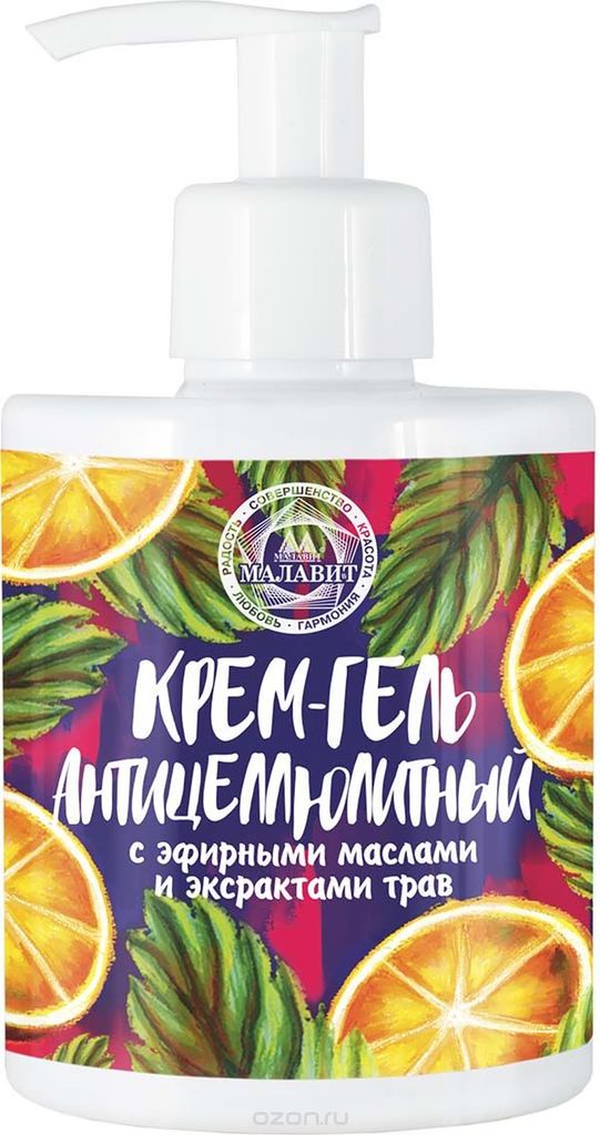 Предназначен для ежедневного ухода за телом. Содержит активный комплекс веществ, эффективно повышающих упругость кожи, благодаря чему противодействует образованию целлюлита и растяжек. Антицеллю... Показать описаниелитный комплекс: 1. Улучшает кровообращение глубоких слоев кожи во время массажа; 2. Способствует интенсивному дренажу, выведению излишков воды из проблемных зон; 3. Делает кожу ровной и гладкой; 4. Помогает избавиться от застойных процессов в подкожной жировой ткани; 5. Предотвращает образование новых жировых отложений. Крем-гель антицеллюлитный «Малавит» способствует уменьшению капиллярной сетки (звездочек) и растяжек (стрий) уже после двух недель применения, видимых проявлений целлюлита после трех-четырех недель ежедневного применения. Способ применения: один-два раза в день наносить массирующими движениями на области бедер, ягодиц, живота. Рекомендуем наносить сразу после принятия горячего душа, так как в его состав входит охлаждающий компонент ментол. Крем-гель так же помогает снять усталость, отеки и тяжесть в ногах, возникающие после трудового дня или после продолжительного стояния на ногах, для этого необходимо нанести небольшое количество данного косметического продукта на область голени массажными движениями снизу вверх. Срок годности: 18 месяцев.
