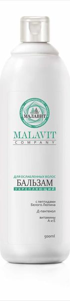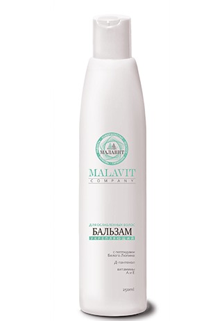 1. Содержит многофункциональное натуральное гигиеническое средство Малавит. 2. Без парабенов. Благодаря комплексному воздействию витаминов, пептидов и микроэлементов, выделяемых из белого сладкого лю... Показать описаниепина, бальзам восстанавливает поврежденную структуру волос по всей длине, облегчает расчесывание, придает блеск волосам и великолепный объем без утяжеления. Способ применения: небольшое количество бальзама нанести на влажные волосы, оставить на 1-2 минуты, промыть тёплой водой. Срок годности: 24 месяца.