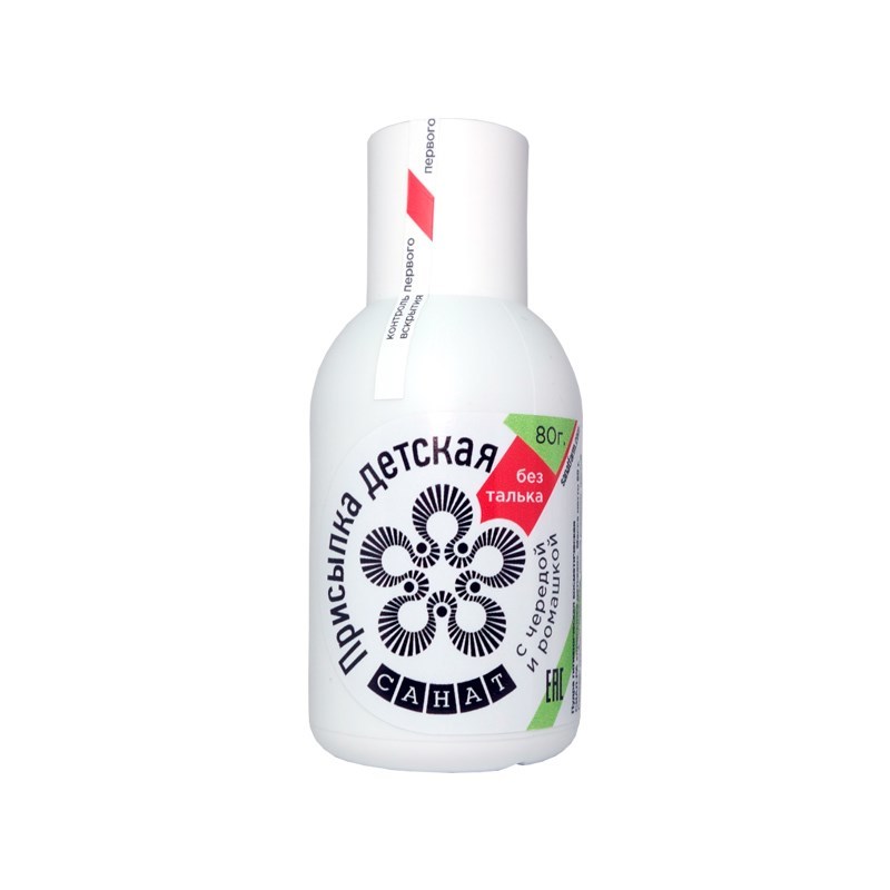 Без талька! Инновационная присыпка для детей производится по экологически чистой технологии, не содержит талька, гипоаллергенна, оказывает мягкое подсушивающее и очищающее действие на кожу Вашего малы... Показать описаниеша. Особенность присыпки - в объединении очищающих свойств безопасного сорбента с противовоспалительным и успокаивающим действием ромашки и череды. Снимает избыточную влагу, способствует очищению и восстановлению кожи, заживлению небольших повреждений, царапин, потертостей, облегчает зуд и раздражение от укусов насекомых и аллергических реакций. Пудра НЕ СОДЕРЖИТ талька, красителей, консервантов и других вредных, раздражающих ингредиентов. Не вызывает аллергию. СОСТАВ: сорбент СИАЛ-РА, настой ромашки, настой череды ВЕС: 80 грамм ПРОТИВОПОКАЗАНИЯ: Повышенная чувствительность к компонентам присыпки. Не использовать на поврежденной коже, не допускать попадания в нос, рот и глаза ребенка. СПОСОБ ПРИМЕНЕНИЯ: Пудра наносится тонким слоем на проблемные участки кожи 1-3 раза в день. Возможно совместное применение с питательным кремом. УСЛОВИЯ ХРАНЕНИЯ: Хранить в закрытом виде при комнатной температуре. Беречь от влаги. СРОК ГОДНОСТИ: 3 года.