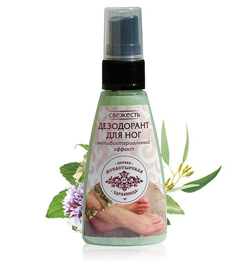 Неприятный запах ног часто возникает из-за грибкового поражения ступней. Именно поэтому «Здравница» разработала специальный дезодорант для ног «Свежесть», натуральные компоненты которого помогают сдер... Показать описаниеживать размножение грибковых бактерий, предотвращают появление неприятного запаха. Дезодорант для ног «Свежесть» прекрасно дополняет действие противогрибкового бальзама «Деготь + сера». Их совместное использование позволит добиться необходимого результата в более короткие сроки. Также дезодорант можно использовать в качестве профилактической защиты при посещении мест общего пользования – спортзалов, бассейнов, саун. Дезодорант снабжен распылителем, что делает его удобным к нанесению. В летнее время его можно брать с собой в дорогу и использовать в пути.