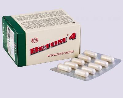 Состав 1 доза БАД (1 капсула) содержит: экстракт кукурузный – 133 мг; крахмал картофельный – 100 мг; сахарная пудра – 67 мг; сухая культура пробиотических микроорганизмов Bacillus amyloliquefaciens шт... Показать описаниеамм ВКПМ В-10643 (DSM 24615), 1х109 КОЕ/г – 30 мг. 1 доза БАД (5 г порошка) содержит: экстракт кукурузный – 2000 мг; крахмал картофельный – 1500 мг; сахароза (сахарная пудра) – 1000 мг; сухая культура пробиотических микроорганизмов Bacillus amyloliquefaciens штамм ВКПМ В-10643 (DSM 24615), 1х108 КОЕ/г – 500 мг. Описание Оздоровительный эффект обеспечивается свойствами бактерий Bacillus amyloliquefaciens, которые, размножаясь преимущественно в тонком отделе кишечника, выделяют биологически активные вещества, подавляющие рост и развитие патогенной и условно-патогенной микрофлоры. Вследствие этого процесса в кишечнике нормализуется микробный состав до соответствующего эволюционно сложившейся норме, очищаются его стенки от неперевариваемых остатков пищи, что способствует активному выводу токсинов из организма, беспрепятственной доставке биологически активных и питательных веществ. Под воздействием Ветома 4 нормализуются: метаболизм, пищеварение и всасывание биологически активных компонентов пищи в желудочно-кишечном тракте. Область применения Рекомендуется в качестве биологически активной добавки к пище как дополнительный источник пробиотических микроорганизмов для улучшения работы желудочно-кишечного тракта и восстановления микрофлоры кишечника. Способ применения Рекомендуется принимать в течение 10 дней по (2-3) дозы в день во время или после приема пищи, запивая небольшим количеством воды, сока или чая. Противопоказания Индивидуальная непереносимость компонентов препарата. Особые указания Применение в период беременности и лактации возможно после консультации с врачом. БАД не влияет на способность управлять автотранспортом или потенциально опасными механизмами.