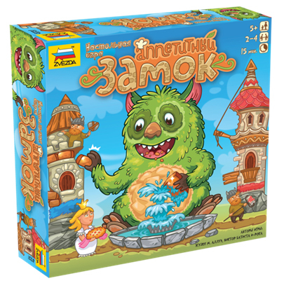 Голодный кирпичеядный монстр слопал замок принцессы Ларисы. Помогите построить ей новое жилье. Целых 5 кубиков разного размера: и игроку нужно построить из них пирамидку. Кубики надо собирать от больш... Показать описаниеего к меньшему: внизу встанет самый большой, а наверху самый маленький. Если пирамидку из всех 5 кубиков построить не удалось – начинает двигаться кирпичеядный монстр, а он непременно захочет полакомиться недостроенным замком! Как отвлечь монстра от своей стройки? Пеките пироги: даже монстр сделает правильный выбор, что именно съесть, когда предлагают пирог и кирпич. Веселье на стройках не затихает. В чьем замке же будет справлять новоселье принцесса Лариса? Состав настольной игры: - Игровое поле (двустороннее) - Башни замка – 13 шт. - Фундаменты – 4 шт. - Кирпичи – 20 шт. - Кубики – 5 шт. - Правила игры - Монстр - Пирог