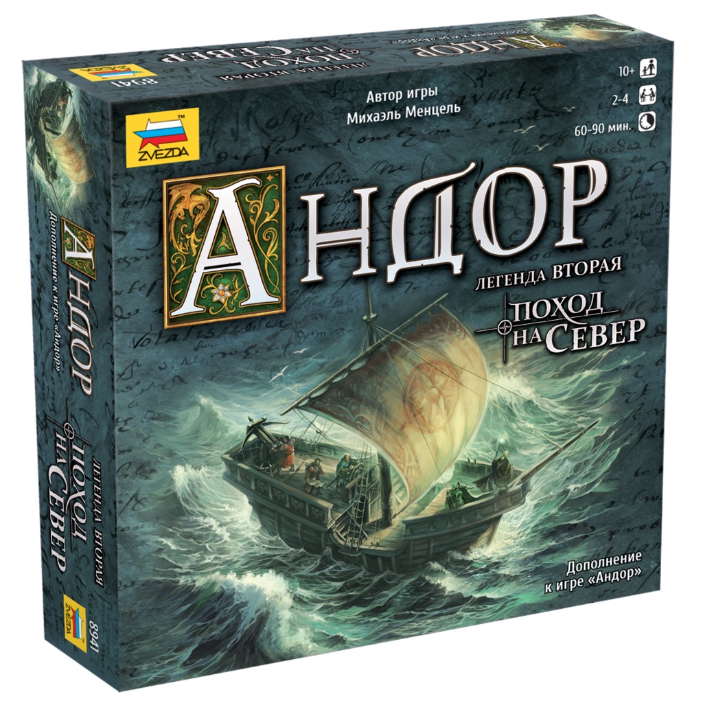После разбойничьего набега Крадеров бесчисленное количество жителей Андора было угнано в рабство. Но герои Андора наконец вернулись и решили освободить пленников. Теперь вам предстоит отправиться в пу... Показать описаниетешествие на юг, чтобы пережить ваше самое великое приключение. По ту сторону Серых гор вас ждут коварные воины-скелеты, которыми командуют великаны-Крадеры. Четыре могущественных щитов из древних времен помогут вам, но сможете ли вы стать героями новой легенды? Вы – последняя надежда. Семь захватывающих легенд потрясающего финала фантастической трилогии Андора ждут вас! Состав настольной игры: - Двустороннее игровое поле - Повозка - Лагерь - Игровые фишки – 46 шт. - Карточки героев – 4 шт. - Картонные элементы – 121 шт. - Таблица предметов - Таблица боя - Игровые карточки – 176 шт. - Кубики – 22 шт. - Деревянные жетоны – 15 шт. - Фишка рассказчика - Мешочки – 15шт. - Правила для вводной игры - Памятка