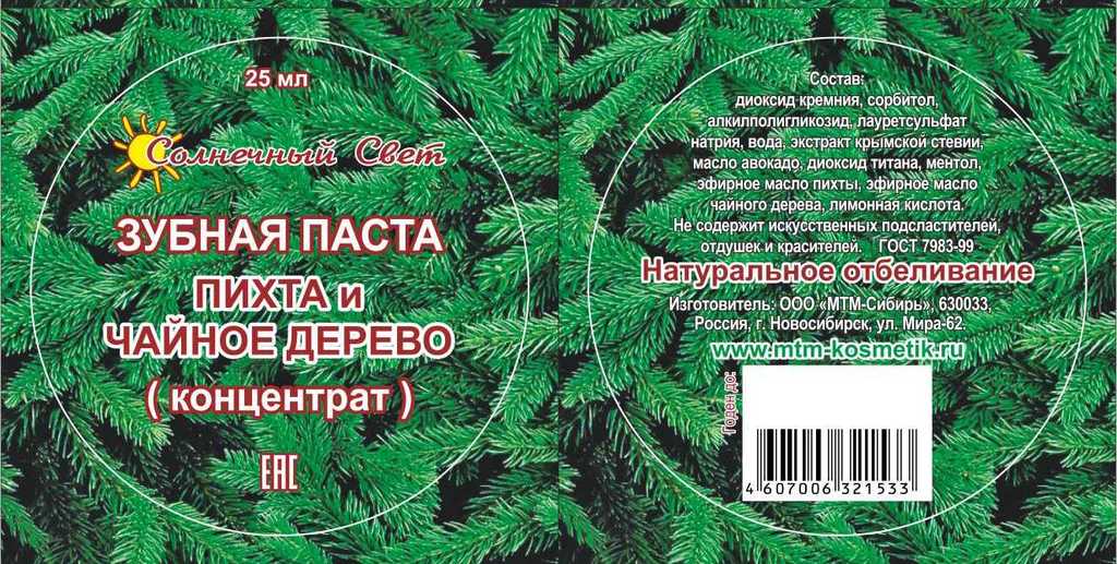 Зубная паста ПИХТА и ЧАЙНОЕ дерево Натуральное отбеливание (концентрат) 25 мл (6) Вопросы по товару