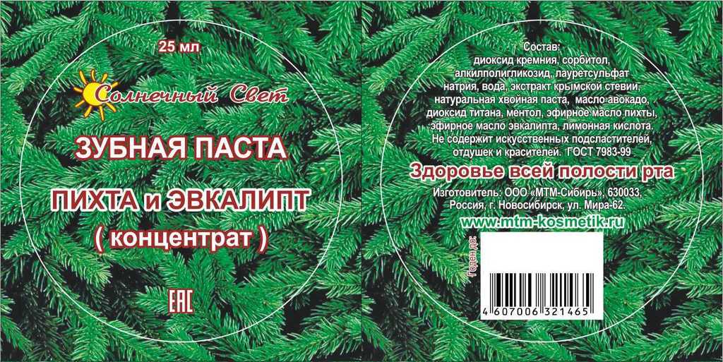 Зубная паста ПИХТА и ЭВКАЛИПТ Здоровье всей полости рта (концентрат) 25 мл (3) Вопросы по товару