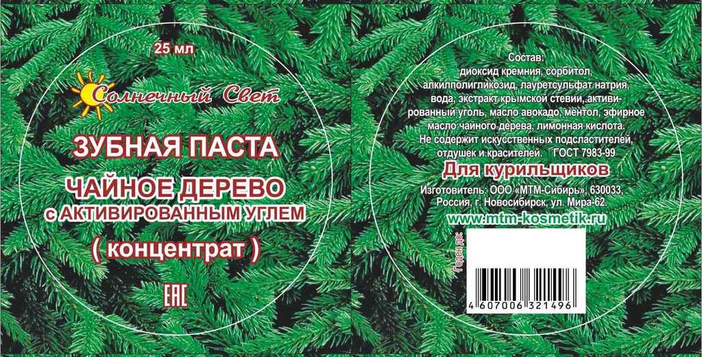 Зубная паста ЧАЙНОЕ дерево с АКТИВИРОВАННЫМ углем для курильщиков (концентрат) 25 мл (4) Вопросы по товару