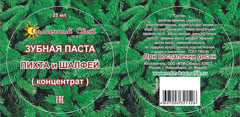 Зубная паста ПИХТА и ШАЛФЕЙ При воспалении десен (концентрат) 25 мл