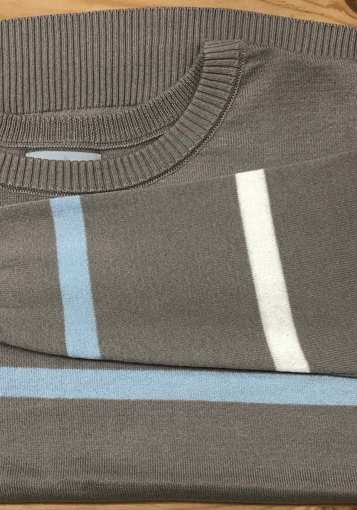 Оттенок серо-бежевый( полоски голубые и белые.)На цвете ср.серый- полоска голубая и белая. На цвете мышка- полоски пудра и белый. Состав: 60% хлопок, 40% акрил