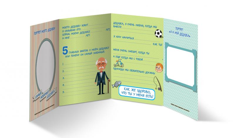 Целая история о любимом дедушке, написанная и нарисованная вашим ребенком – какой подарок может быть лучше?! Эта мини-история станет самым дорогим сердцу подарком для любого дедушки. Сохранив ее на до... Показать описаниелгие годы в семейном альбоме, через много лет вам будет безумно интересно прочитать ее вновь. Внутри красочно оформленный буклет–заготовка для Вашего ребенка, чтобы красиво поздравить дедушку с Днем Рождения, 23 февраля, или просто без повода рассказать о своей любви. Cute'n Clever - начало семейной истории!