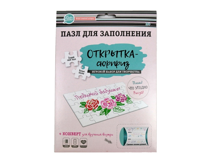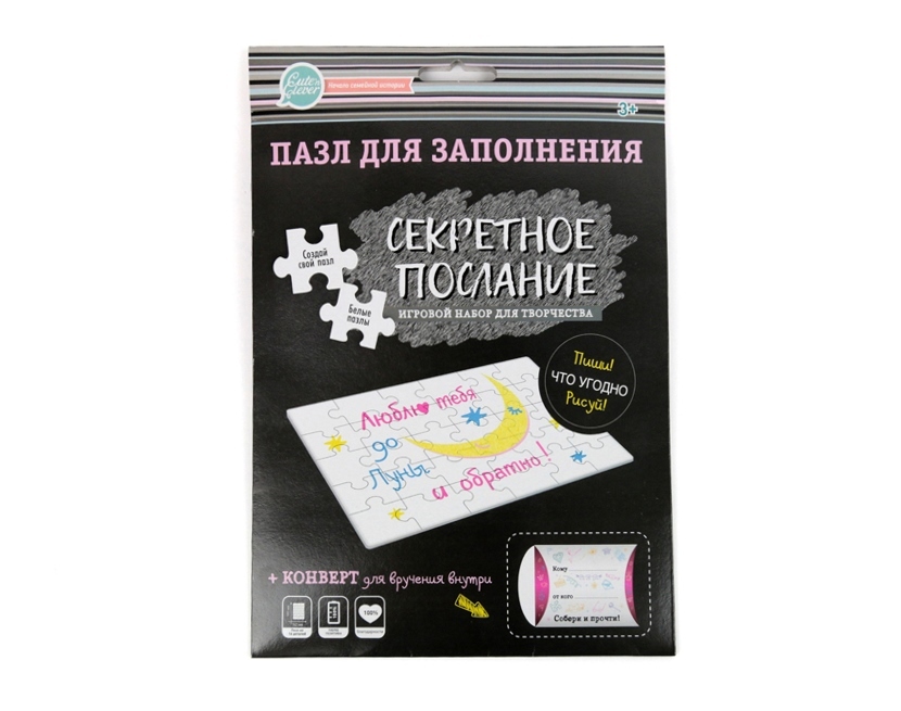 Оригинальная новинка - пазл для заполнения «Секретное послание» тмCute’n Clever. Пазл идеален для создания подарочной открытки на День Рождения, юбилей просто в подарок тому, кого хочется порадовать и... Показать описание сделать небольшой приятный сюрприз: маме, папе, бабушке, дедушке, друзьям, учителям, да кому угодно!. Просто нарисуйте или напишите на пазле маркерами, красками, ручками, карандашами, отпечатками, всем, чем угодно. Разберите, положите в специальную коробочку-конвертик (входит в набор) и вручите. Приятный сюрприз и яркие эмоции гарантированы! В наборе: • пазл из 16 элементов с печатью на задней стороне (плотный картон с матовой белой поверхностью); • самосборный конверт из плотной бумаги. Размер упаковки 17х24 см.