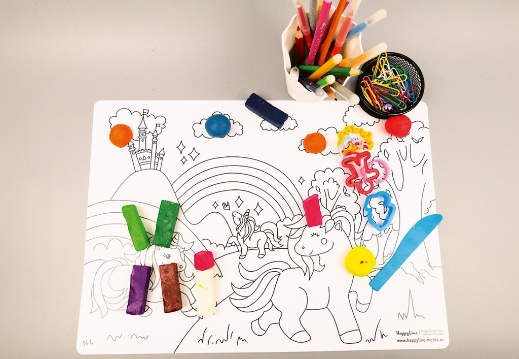 Для всех, кто любит творить, раскрашивать, для всех, кому нравится получать удовольствие от творчества или просто расслабляться с цветными карандашами или фломастерами в руке - многофункциональная рас... Показать описаниекраска HappyArt«Страна единорогов». Перед вами многоразовая раскраска. Раскрашивать можно и цветными карандашами и фломастерами! Карандаши стираются обычным ластиком! А фломастеры – просто смываются водой или влажной салфеткой! Коврик сделан из мягкого приятного пластика со специальным покрытием, благодаря которому на нем возможно бесконечное множество раз рисовать, стирать и снова рисовать! Пластиковая раскраска является еще и защитным покрытием для обеденного или рабочего стола. На ней можно лепить, творить и не бояться за поверхность стола! Защитные коврики-раскраски для стола HappyArt не только отлично защитят поверхность стола от царапин и грязи, но и подарят массу удовольствий! Кроме того, раскраски с мелкими деталями - отличная арт-терапия! Правила использования: - когда коврик испачкан или разрисован просто помойте его под струей воды или влажными салфетками, простые и цветные карандаши стираются обычным ластиком! - не стирайте коврик в посудомоечной машине - держите дальше от огня, не ставьте на коврик горячие предметы - не разрезайте и не складывайте коврик во избежание порезов и травм