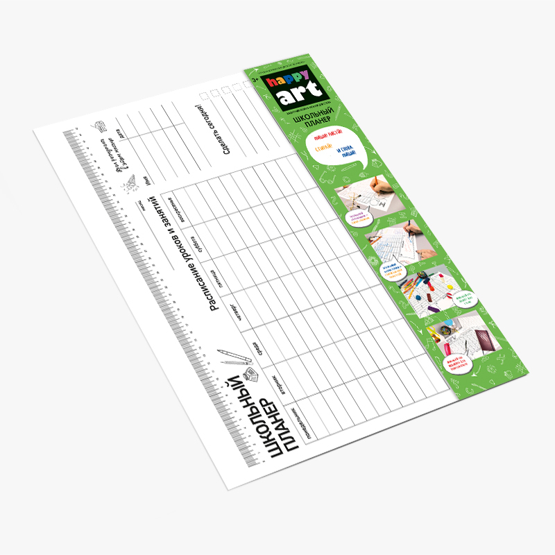 Многофункциональная защита для поверхности рабочего стола каждого школьника «ШКОЛЬНЫЙ ПЛАНЕР» Коврик сделан из мягкого приятного пластика со специальным покрытием, благодаря которому на нем возможно б... Показать описаниеесконечное множество раз писать, стирать и снова писать! • Удобная большая таблица для расписания уроков в школе и дополнительных занятий. • Дни Рождения друзей и близких на ближайший месяц, чтобы никого не забыть поздравить • Список самых важных дел • Место для быстрых заметок или рисунков • И возможность выразить свое настроение Писать можно простым карандашом, цветными карандашами и фломастерами! Карандаши стираются обычным ластиком! А фломастеры – просто смываются водой или влажной салфеткой! Пластиковая раскраска является еще и защитным покрытием для рабочего стола. На ней можно лепить, творить и не бояться за поверхность стола! Защитные коврики-раскраски для стола HappyArt не только отлично защитят поверхность стола от царапин и грязи, но и подарят массу удовольствий! Правила использования: - когда коврик испачкан или разрисован просто помойте его под струей воды или влажными салфетками, простые и цветные карандаши стираются обычным ластиком! - не стирайте коврик в посудомоечной машине - держите дальше от огня, не ставьте на коврик горячие предметы - не разрезайте и не складывайте коврик во избежание порезов и травм