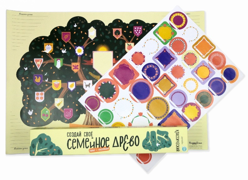 Хотите познакомить своих детей с историей семьи? Начните с семейного древа. Составьте его всей семьей и подключите к этому процессу бабушек и дедушек. Представляем вам оригинальный набор ТМ Cute’nClev... Показать описаниеer «Семейное древо. Классический» В наборе: - плакат формата А2 с иллюстрациями художника для оформления вашего семейного древа - фоторамки – наклейки для оформления фотографий на семейном древе Как составлять семейное древо? • Соберите и распечатайте фотографии родственников до поколения, которое вам известно. Фотографии выбирайте не крупные, лучше делайте копию, чтобы можно было вырезать из нее портретную часть. • Приклейте вырезанное фото на нужно место на плакате. • Ориентировочные места для фото обозначены сердечками или гербами, но вы можете выстраивать все в своем порядке. • Обклейте все фотографии рамочками-наклейками – они скроют срезы на фотографиях. И придадут всему плакату завершенный и аккуратный вид. • Подпишите имена на рамках. • В графах Важные даты впишите Дни Рождения родственников, годовщины и любые важные семейные даты. Оформите Семейное древо в рамку и украсьте им комнату.