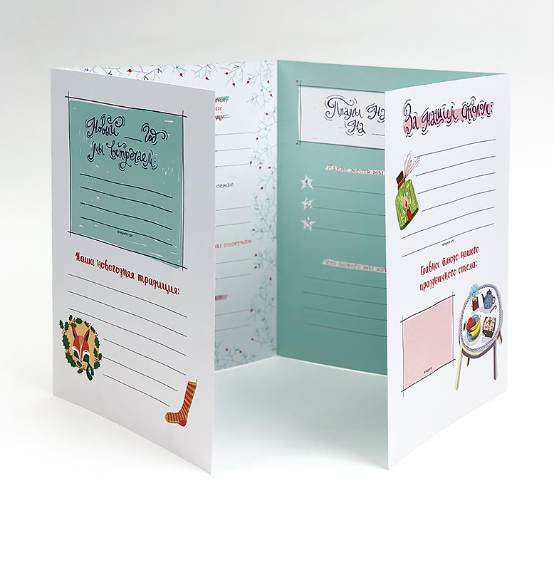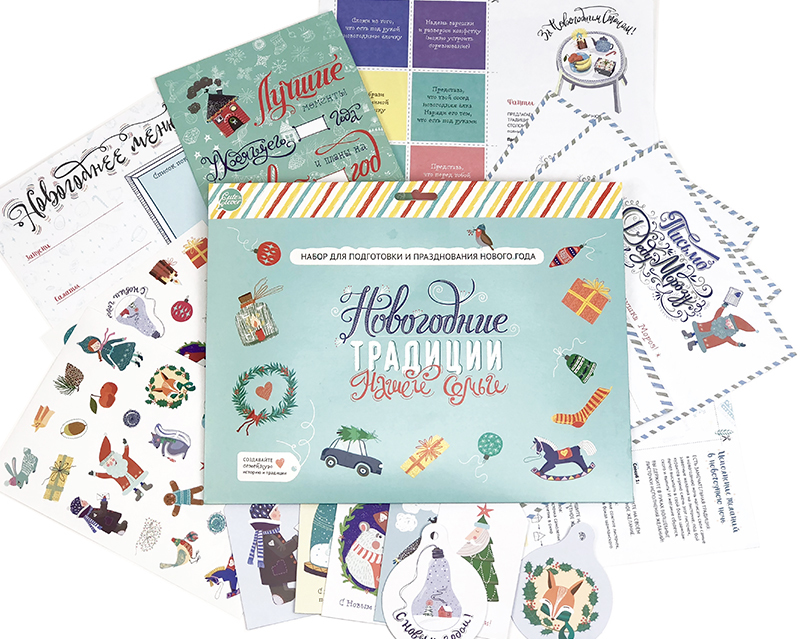В наборе: заготовка для составления новогоднего меню -1 шт.; заготовка для составления списка подарков - 1 шт.; письма Деду Морозу - 4 шт.; бирки-открытки для оформления подарков - 7 шт.; набор НГ нак... Показать описаниелеек для оформления подарков и открыток - 40 наклеек; игра за новогодним столом "Новогодние семейные фанты" с заданиями - 30 заданий; листочки для желаний - 6 шт.; буклет-заготовка "Лучшие моменты Уходящего года и планы на новый год нашей семьи" - 1 шт.)