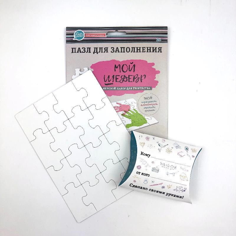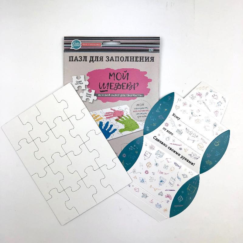 Пазл для заполнения. "Мой шедевр" Пазл для заполнения. "МОЙ ШЕДЕВР" Оригинальная новинка - пазл для заполнения «МОЙ ШЕДЕВР» тмCute’n Clever. С пазлом «МОЙ ШЕДЕВР Вы можете создать что угодно! Нарисова... Показать описаниеть картинку, сделать отпечатки ладошек всех членов семьи, добавить красивые надписи. Ребенок может нарисовать подарок маме, папе, бабушке или дедушке. Или просто создать свою собственную картинку-пазл, которую ему захочется разбирать и собирать много раз. В наборе: • пазл из 16 элементов с фирменной печатью на задней стороне и белой лицевой стороной для заполнения (плотный картон с матовой белой поверхностью); • самосборный конверт из плотной бумаги. Размер упаковки 17х24 см.