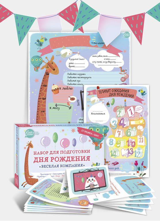 Скоро День Рождения? Красиво оформить праздник можно самостоятельно и без лишних затрат – в помощь Набор для подготовки Дня Рождения "Веселая Компания", иллюстрированный художником. ЧТО ВНУТРИ: Плакат... Показать описание - раскраска Ожидания Дня Рождения (формат А3, размер 29,7 х 42 см) Приглашения на День Рождения (5 приглашений) Плакат об имениннике для заполнения (формат А1, размер 59,4 х 84,1 см) Карточки Пожелания в День Рождения (5 карточек) Праздничная гирлянда для фото 24 предмета для Вашего праздника в 1 коробке! С плакатом Ожидания Дня Рождения ждать праздник ребенку будет весело и занимательно! За 14 дней до праздника нужно заполнить плакат ожидания вместе с ребенком. Каждый день именинник будет раскрашивать один рисунок на плакате и как только все подарки будут раскрашены – наступит День Рождения! В наборе 5 приглашений на День Рождения, чтобы пригласить родных и близких на праздник красиво! Нужно просто заполнить иллюстрированные приглашения с ребенком и раздайть всем, кого именинник хочет пригласить на свой праздник. Плакат об имениннике для заполнения поможет на празднике красочно рассказать все самое интересное из жизни именинника. Заполнить его совсем не сложно: вклеиваем фото именинника, заполняем главные достижения и события за год - фотозона для Дня Рождения готова. Также для Дня Рождения пригодится праздничная гирлянда, куда можно вклеить 12 фото именинника. На празднике не будет скучно с карточками Пожелания в День Рождения. Эти карточки следует раздать гостям на празднике для заполнения и вместо банальных пожеланий, у именинника будут оригинальные и интересные пожелания на будущее. Гости предположат, кем сможет стать именинник, когда вырастет, чего он сможет достигнуть и т.д. Как же интересно их будет читать и посмотреть, что сбылось, когда ребенок достигнет совершеннолетия!