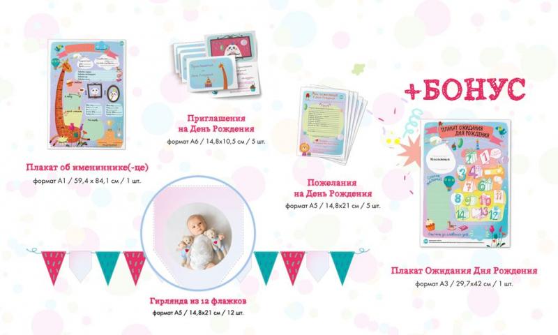 Скоро День Рождения? Красиво оформить праздник можно самостоятельно и без лишних затрат – в помощь Набор для подготовки Дня Рождения "Акварельное Настроение", иллюстрированный художником. ЧТО ВНУТРИ: ... Показать описаниеПлакат-раскраска Ожидания Дня Рождения (формат А3, размер 29,7 х 42 см) Приглашения на День Рождения (5 приглашений) Плакат об имениннике для заполнения (формат А1, размер 59,4 х 84,1 см) Карточки Пожелания в День Рождения (5 карточек) Праздничная гирлянда для фото 24 предмета для Вашего праздника в 1 коробке! С плакатом Ожидания Дня Рождения ждать праздник ребенку будет весело и занимательно! За 14 дней до праздника нужно заполнить плакат ожидания вместе с ребенком. Каждый день именинник будет раскрашивать один рисунок на плакате и как только все подарки будут раскрашены – наступит День Рождения! В наборе 5 приглашений на День Рождения, чтобы пригласить родных и близких на праздник красиво! Нужно просто заполнить иллюстрированные приглашения с ребенком и раздайть всем, кого именинник хочет пригласить на свой праздник. Плакат об имениннике для заполнения поможет на празднике красочно рассказать все самое интересное из жизни именинника. Заполнить его совсем не сложно: вклеиваем фото именинника, заполняем главные достижения и события за год - фотозона для Дня Рождения готова. Также для Дня Рождения пригодится праздничная гирлянда, куда можно вклеить 12 фото именинника. На празднике не будет скучно с карточками Пожелания в День Рождения. Эти карточки следует раздать гостям на празднике для заполнения и вместо банальных пожеланий, у именинника будут оригинальные и интересные пожелания на будущее. Гости предположат, кем сможет стать именинник, когда вырастет, чего он сможет достигнуть и т.д. Как же интересно их будет читать и посмотреть, что сбылось, когда ребенок достигнет совершеннолетия! ВЕСЕЛОГО И КРАСИВОГО ДНЯ РОЖДЕНИЯ!
