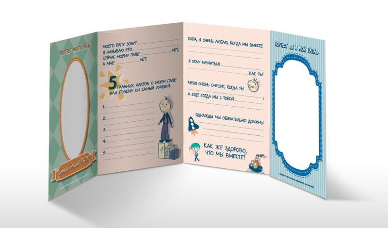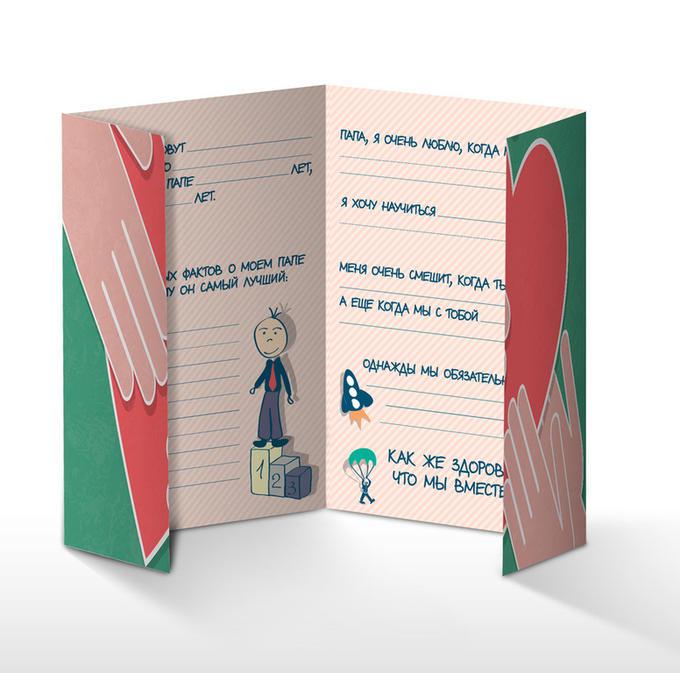 Целая история о любимом папе, написанная и нарисованная вашим ребенком – какой подарок может быть лучше?! Эта мини-история станет самым дорогим сердцу подарком для любого папы. Сохранив ее на долгие г... Показать описаниеоды в семейном альбоме, через много лет вам будет безумно интересно прочитать ее вновь. Внутри красочно оформленный буклет–заготовка для Вашего ребенка, чтобы красиво поздравить папу с Днем Рождения, 23 февраля, или просто без повода рассказать о своей любви. Cute'n Clever - начало семейной истории!