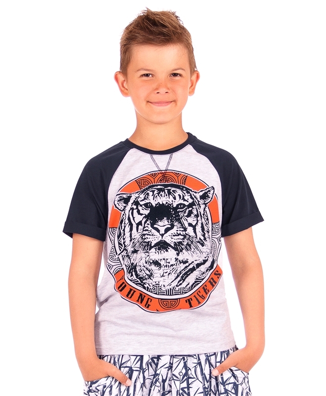 Состав: кулир / хлопок 70% + полиэстер 30%. Футболка для мальчика выполнена из тонкого хлопкового полотна. Изделие украшено стильным принтом. Отличный вариант для летнего дня! Уход: только машинная ст... Показать описаниеирка (руками не стирать!) при температуре 40 градусов, без предварительного замачивания. Изделия с печатью и декором перед стиркой необходимо вывернуть на изнаночную сторону.