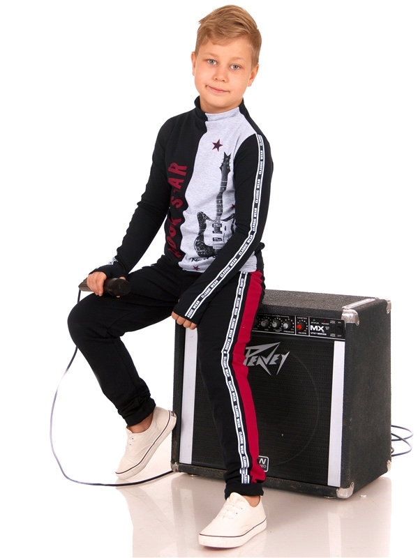 Состав: футер / хлопок 68% + полиэстер 27% + лайкра 5%. Стильные брюки для мальчика выполнены из теплого хлопкового полотна с лайкрой. Изделие на эластичном поясе, декорировано небольшой штучной печат... Показать описаниеью и лампасами. Отличный вариант на каждый день! Уход: только машинная стирка (руками не стирать!) при температуре 40 градусов, без предварительного замачивания. Изделия с печатью и декором перед стиркой необходимо вывернуть на изнаночную сторону.