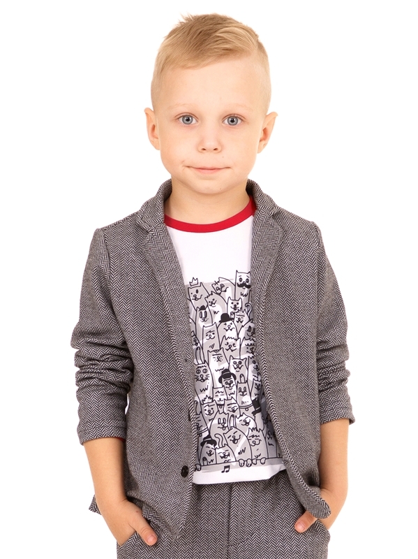 Состав: жаккард / хлопок 50% + полиэстер 50%. Пиджак для мальчика выполнен из плотного полотна с рельефным рисунком, выполненным с применением жаккардового плетения. Изделие с длинными рукавами, с зас... Показать описаниетежкой на пуговицы. Уход: только машинная стирка (руками не стирать!) при температуре 40 градусов, без предварительного замачивания.