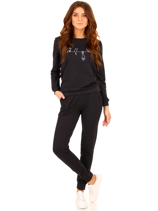 Состав: футер / хлопок 68% + полиэстер 27% + лайкра 5%. Комплект из свитшота и брюк выполнен из теплого хлопкового полотна с лайкрой. Свитшот с длинными рукавами на манжетах, украшен стильной вышивкой... Показать описание. Брюки на эластичном поясе и с манжетами. Уход: только машинная стирка (руками не стирать!) при температуре 40 градусов, без предварительного замачивания. Изделия с печатью или декором перед стиркой необходимо вывернуть на изнаночную сторону.
