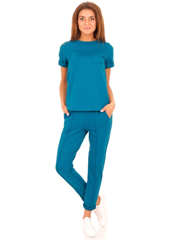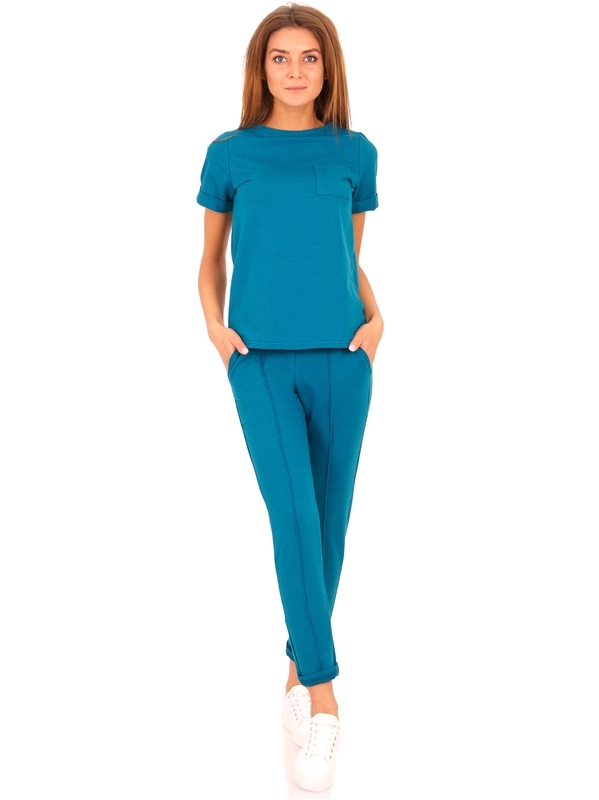 Состав: футер / хлопок 68% + полиэстер 27% + лайкра 5%. Комплект из теплого хлопкового полотна с лайкрой. Футболка с короткими рукавами и округлым вырезом горловины, украшена небольшим карманом. Укоро... Показать описаниеченные брюки со стрелками средней посадки на эластичном поясе. Отличный вариант на каждый день! Уход: только машинная стирка (руками не стирать!) при температуре 40 градусов, без предварительного замачивания.