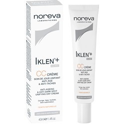 Noreva Iklen CC Creme - Крем дневной антивозрастной уход - с нежной, нежирной текстурой моментально делает кожу мягкой, бархатистой и сияющей, разглаживает морщинки, маскирует мелкие несовершенства ми... Показать описаниекрорельефа, улучшает и выравнивает цвет лица. С каждым днем имеющиеся пигментные пятна становятся светлее, а новые не появляются, повышается упругость и эластичность кожи, укрепляется эпидермальный барьер. Крем можно применять как самостоятельное тонирующее средство и использовать в качестве основы под макияж. Он быстро впитывается, не оставляет на коже разводов и жирного блеска, не создает эффекта маски. Способ применения: Утром нанесите тонкий слой крема на очищенную кожу лица скользящими движениями по направлению массажных линий. Объем: 40 мл.
