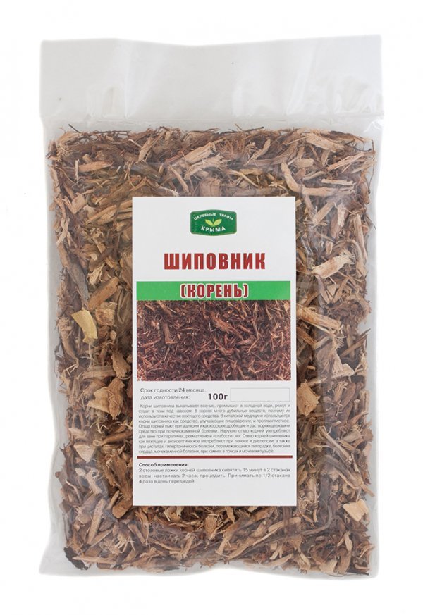 Корни шиповника выкапывают осенью, промывают в холодной воде, режут и сушат в тени под навесом. В корнях много дубильных веществ, поэтому их используют в качестве вяжущего средства. В китайской медици... Показать описаниене используются корни шиповника как средство, улучшающее пищеварение, и противоглистное. Отвар корней пьют при малярии и как хорошее дробящее и растворяющее камни средство при почечнокаменной болезни. Наружно отвар корней употребляют для ванн при параличах, ревматизме и «слабости» ног. Отвар корней шиповника как вяжущее и антисептическое употребляют при поносе и диспепсии, а также при циститах, гипертонической болезни, перемежающейся лихорадке, болезнях сердца, мочекаменной болезни, при камнях в почках и мочевом пузыре. Способ приготовления и применения: 2 столовые ложки корней шиповника кипятить 15 минут в 2 стаканах воды, настаивать 2 часа, процедить. Принимать по 1/2 стакана 4 раза в день перед едой.