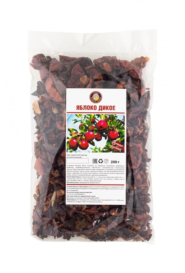 В народной медицине яблоки используют как витаминное, укрепляющее, кроветворное, мочегонное, противовоспалительное, слабительное, ранозаживляющее, бактерицидное средство. Отвар плодов яблони лесной ул... Показать описаниеучшает пищеварение, его применяют при заболеваниях желудочно-кишечного тракта, колитах, хронических запорах, пьют при мочекаменной болезни, подагре, ревматизме. Они препятствуют ожирению, гипертонической болезни, атеросклерозу, анемии. Способ приготовления: Отвар из диких яблок: 1 ст.л. сухих и измельченных яблок залить 1 стаканом воды, кипятить 10 мин, отстаивать, настоять еще 1 час, процедить, добавить мед по вкусу. Принимать отвар по 1 стакану 3 раза в день до еды.