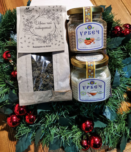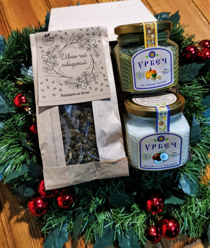 Состав набора: Иван-чай сибирский - 1шт., урбеч - 2 шт. Урбечи на выбор указываем в комментариях: из мякоти кокоса, из абрикосовой косточки, из кунжута, из тыквенной семечки. Так же если выбираете над... Показать описаниепись "своё" в комментарии прописываете желаемую надпись. Важно! дизайн надписи остаётся на усмотрение изготовителя.