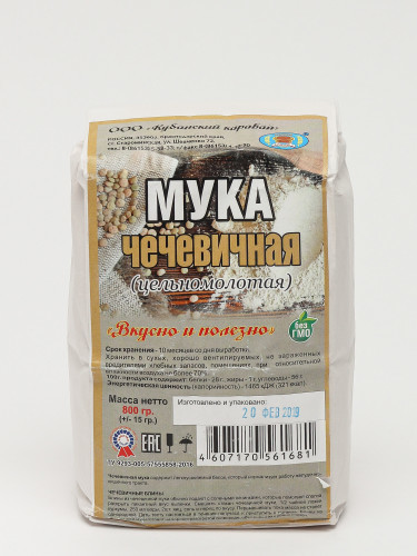 Полезные качества муки из гороха: Благодаря содержанию лизина и треонина оказывает общеукрепляющее воздействие на организм. Пиридоксин производит, а затем расщепляет аминокислоты. Если организм испыты... Показать описаниевает его дефицит, могут появиться судороги, а также развиться дерматит. Селен обеспечивает продукт антиоксидантными свойствами, он выступает защитником клеток от канцерогенов и радикалов свободного типа. Белок растительного происхождения наш желудок усваивает лучше, чем мясной. А это благоприятно сказывается на деятельности ЖКТ. Гороховая мука обеспечит наш организм энергией, повысит работоспособность. Если мука из гороха будет частым гостем в рационе человека, у него понизится возможность развития сердечных недугов, а также появления тромбов. Оказывает легкое желчегонное и мочегонное воздействие. Мука из гороха поможет при заболевании диабетом и туберкулезом. Продукт рекомендовано включать в диетическое меню, поскольку компоненты, находящиеся в его составе, способствуют улучшению обменных процессов и не дают образовываться подкожным жировым отложениям. Чтобы мозг работал лучше, а нервы были крепче, перед трапезой специалисты советуют съедать по одной чайной ложечке муки из гороха. Клетчатка, находящаяся в продукте, поможет при запорах и других проблемах ЖКТ. Поможет мука из гороха и при ранах, а также нарывах на кожных покровах. В этих случаях ее используют в качестве компрессов. Врачи включают гороховую муку в меню людей, у которых диагностированы недуги эндокринной системы. Выпечка на муке из гороха нужна людям, страдающим авитаминозом. Внимание! Энергетическая ценность муки из гороха составляет семьдесят одну килокалорию на сто граммов. Упаковка может быть видоизменена.