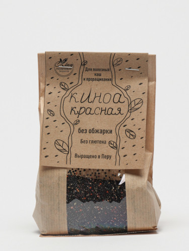 Киноа красная. Срок годности 12 месяцев. Хранить при температуре не выше 25 С. Пищевая ценность на 100 г: калорийность - 368 ккал, белки - 14,1 г, жиры - 6,1 г, углеводы - 47,2 г.