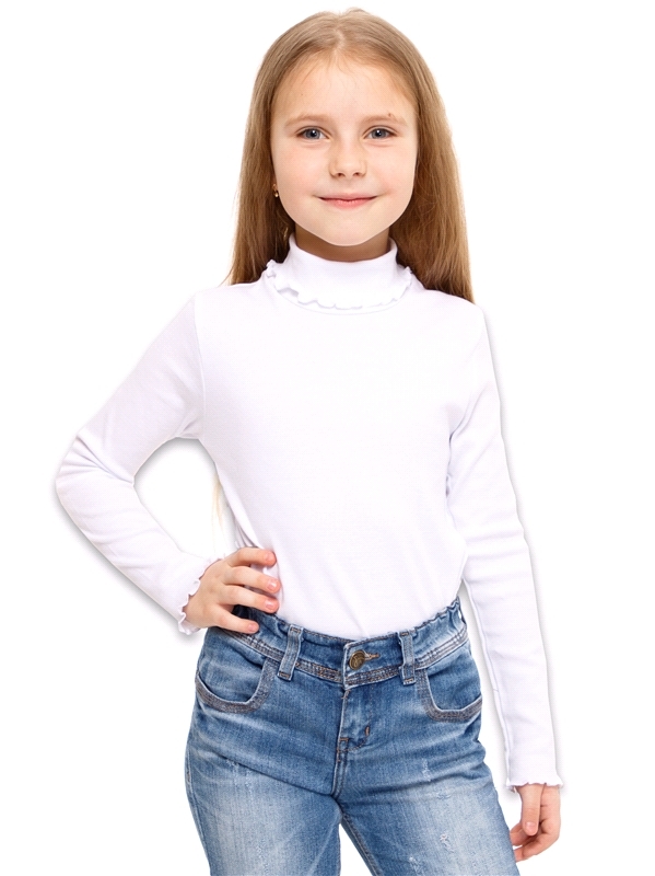 Состав: кулир с лайкрой / хлопок 92% + лайкра 8%. Лонгслив для девочки выполнен из легкого хлопкового полотна с лайкрой. Изделие с длинными рукавами, декорировано печатью, имитирующей кружевной воротн... Показать описаниеичок. Незаменимый предмет гардероба для школьниц! Уход: только машинная стирка (руками не стирать!) при температуре 40 градусов, без предварительного замачивания. Изделия с печатью и декором перед стиркой необходимо вывернуть на изнаночную сторону.