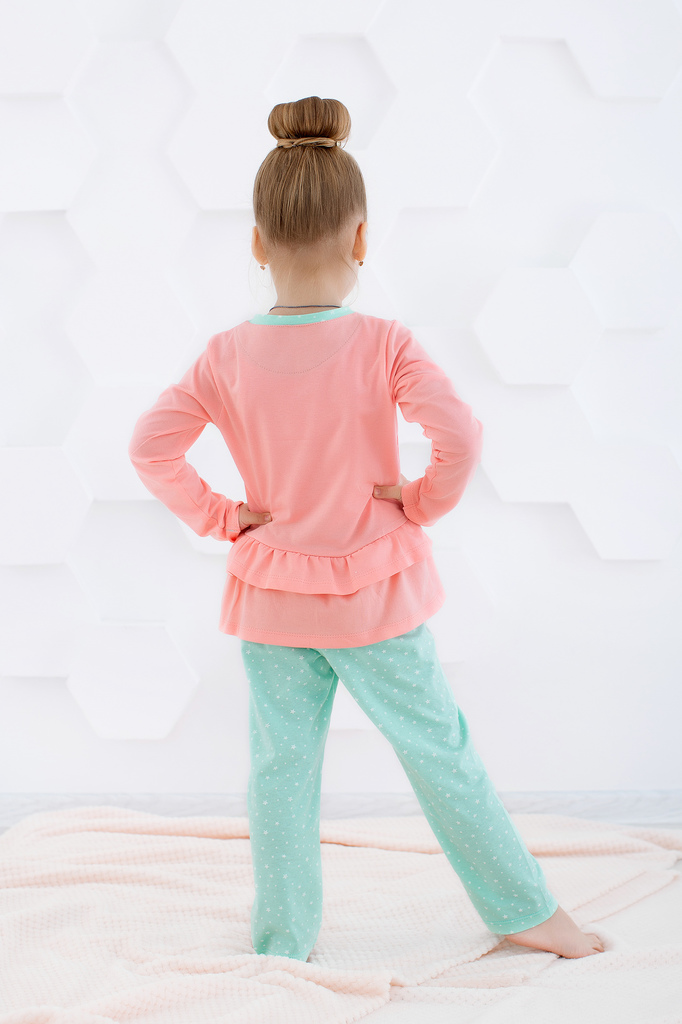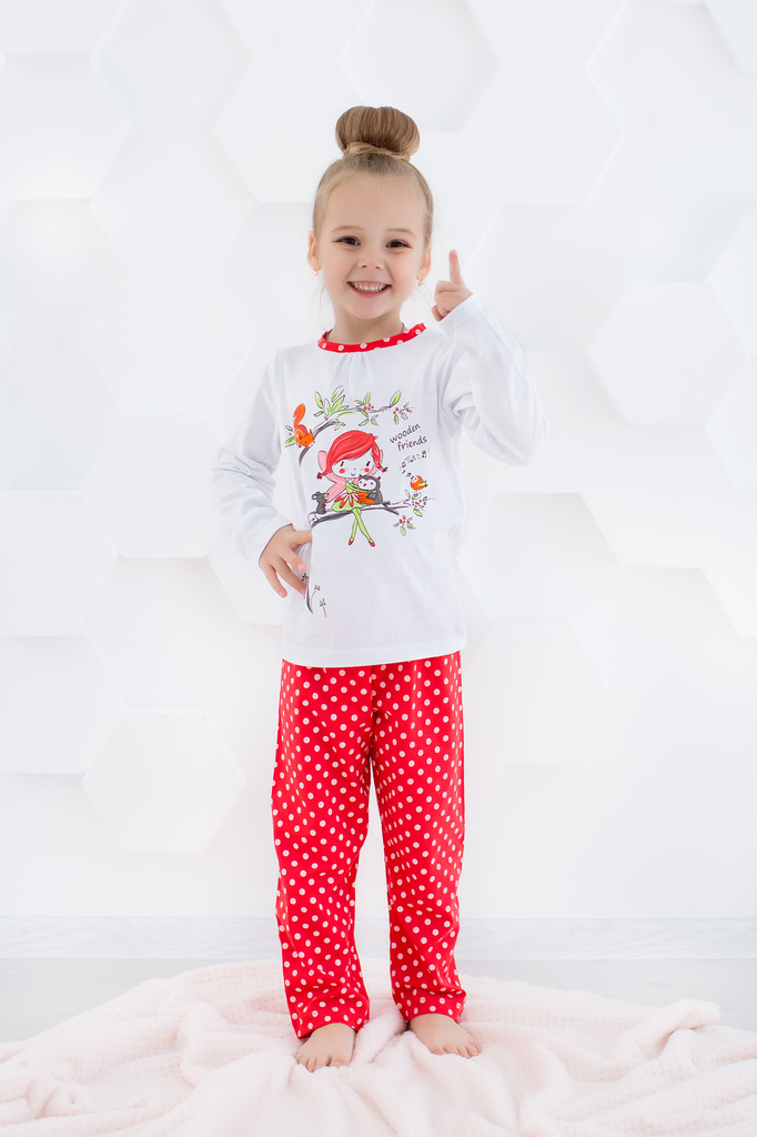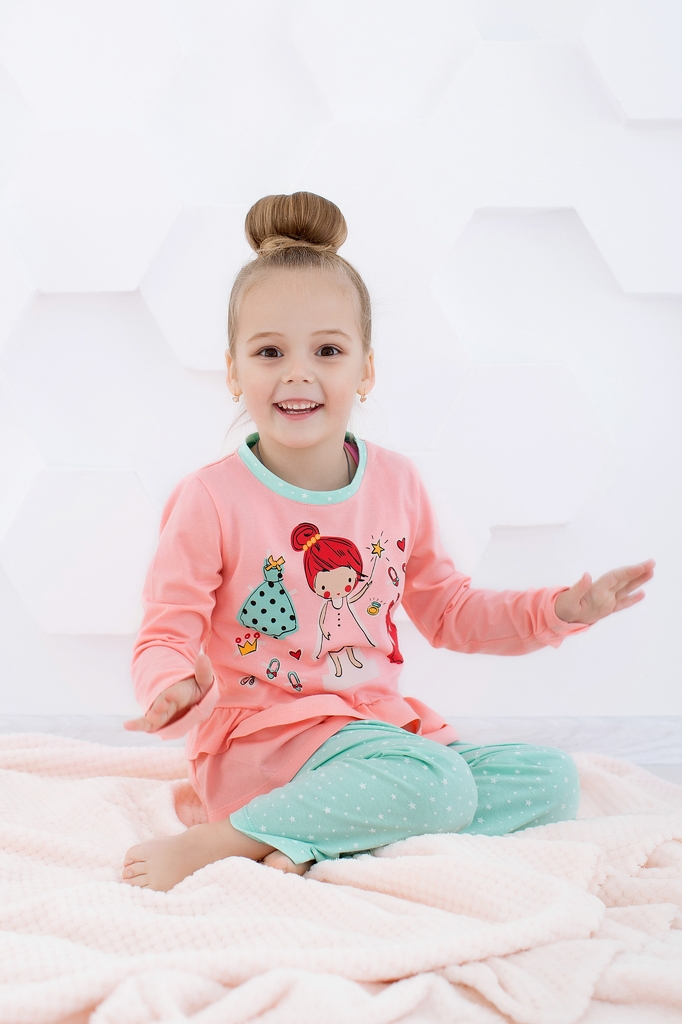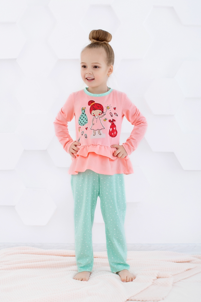 Ваша малышка непременно будет в восторге от этой прелестной пижамы, в которой ей будет комфортно и уютно! Выполненная из мягкой хлопковой ткани она прекрасно садится по фигуре. Ткань - кулирное полотн... Показать описаниео 100% хлопок. Горловина изделия обрабатывается под окантовку. Характеристики: мягкая трикотажная ткань из хлопка; длинный рукав для дополнительного тепла; длинные брюки для дополнительного тепла; оригинальное цветовое решение; машинная стирка; 100% хлопок; держать вдали от огня.