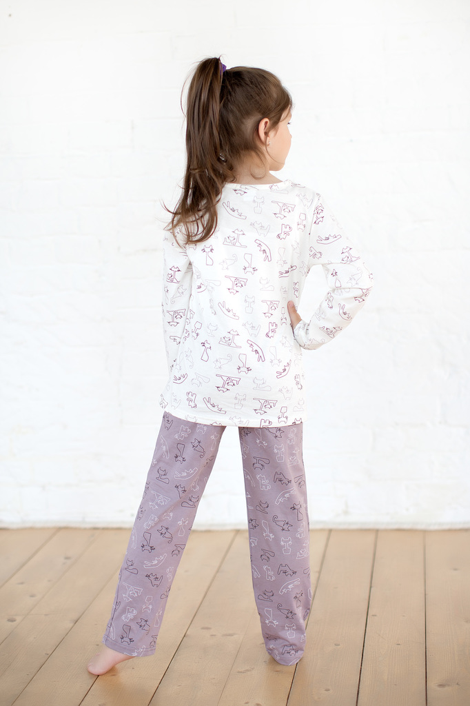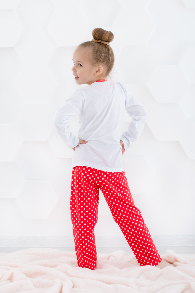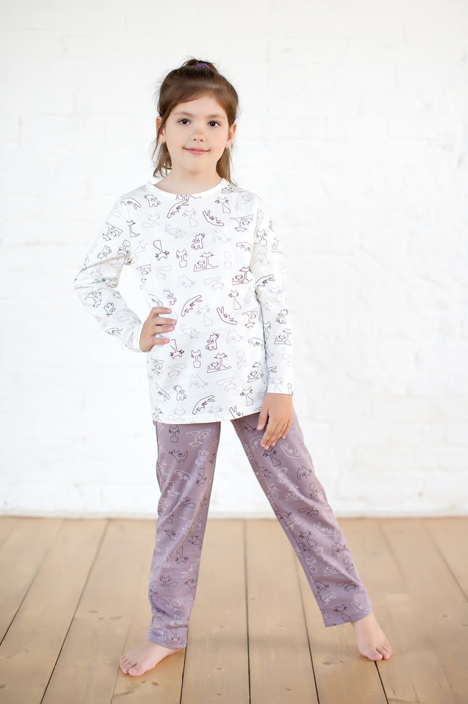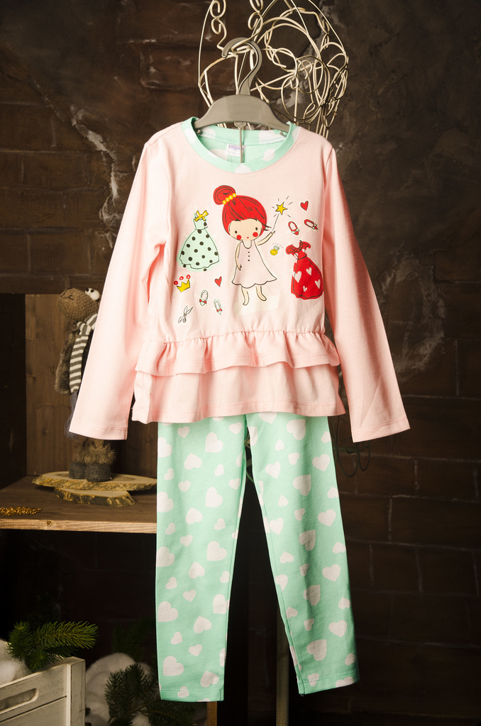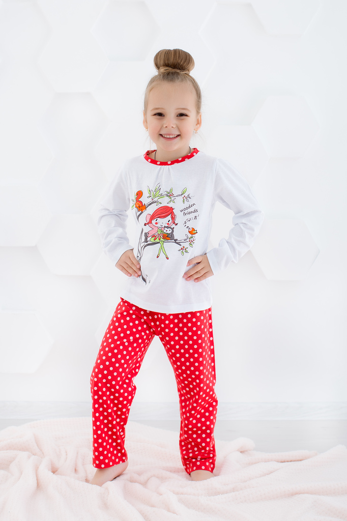Ваша малышка непременно будет в восторге от этой прелестной пижамы, в которой ей будет комфортно и уютно! Выполненная из мягкой хлопковой ткани она прекрасно садится по фигуре. Ткань - кулирное полотн... Показать описаниео 100% хлопок. Горловина изделия обрабатывается под окантовку. Характеристики: мягкая трикотажная ткань из хлопка; длинный рукав для дополнительного тепла; длинные брюки для дополнительного тепла; оригинальное цветовое решение; машинная стирка; 100% хлопок; держать вдали от огня.
