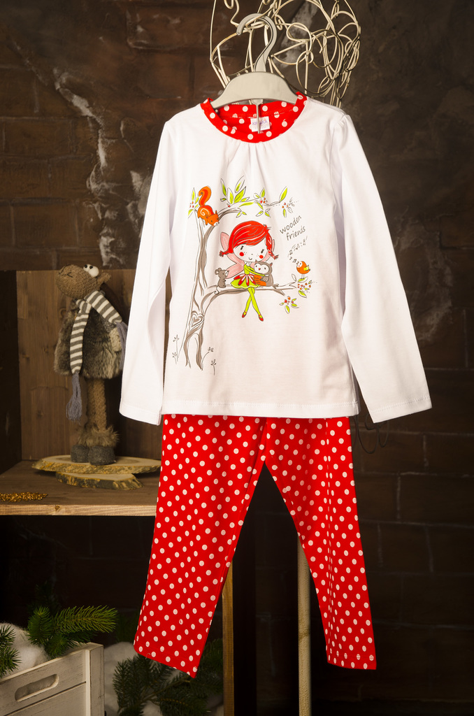 Каждая девочка мечтает побыть феей! Разбавьте гардероб вашей девочки яркими и веселыми красками с помощью этого детского комплекта с забавным рисункам лесной феи. Ткань - кулирное полотно 100% хлопок.... Показать описание Горловина изделия обрабатывается под планку. На внутренней стороне спинки пришивается деталь из той же ткани что и брючки для объединения образа. Под горловиной и на плечевых швах обрабатывается сборка. Брюки прямого кроя слегка зауженные к низу. Изделие украшает очень красочный и яркий принт. Характеристики: мягкая трикотажная ткань из хлопка; длинный рукав для дополнительного тепла; красочный принт; белый; машинная стирка; 100% хлопок; держать вдали от огня.
