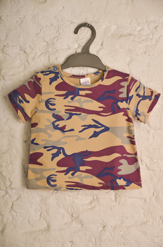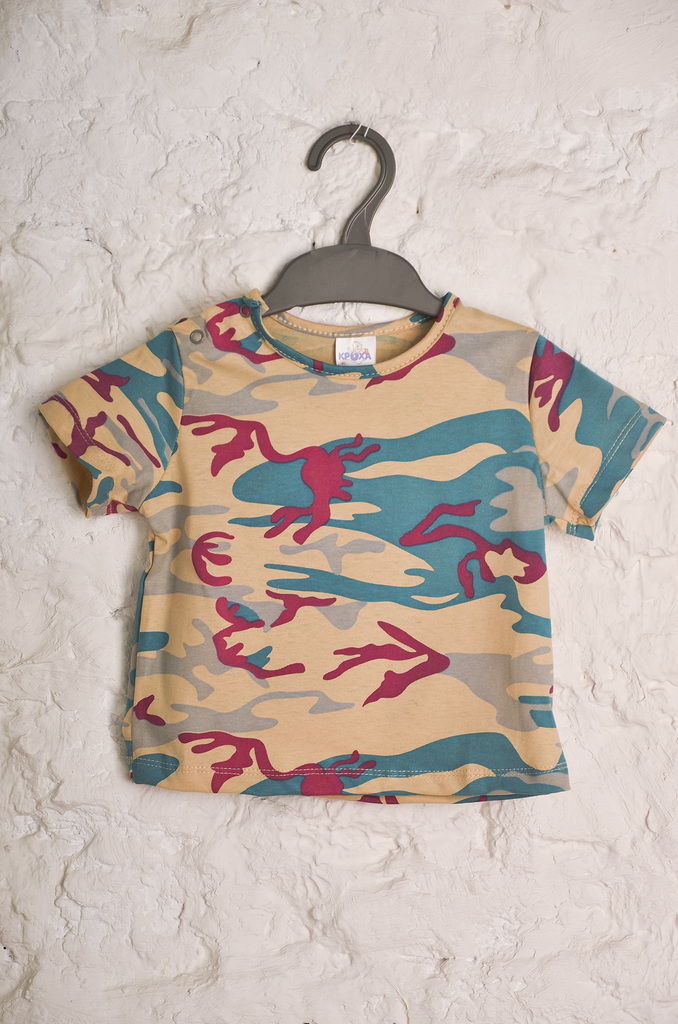 Добавьте забавный штрих образу вашего ребенка с помощью этой очаровательной футболки с принтом в военной тематике. Мягкий хлопковый материал и короткие рукава обеспечат комфорт в жаркую погоду. Футбол... Показать описаниека имеет застежки-кнопки на плече для удобства переодевания. Все наши застежки не содержат никель. Ткань - Кулирная гладь 100% ХЛОПОК. Горловина обрабатывается под окантовку. Цвет: экрю с набивными звёздочками. Характеристики: Мягкая хлопковая ткань; Короткие рукава; застёжки на плече; Все наши застежки не содержат никель, вызывающий раздражение кожи; Набивной рисунок; Машинная стирка при 30C; 100% хлопок; Держать вдали от огня.