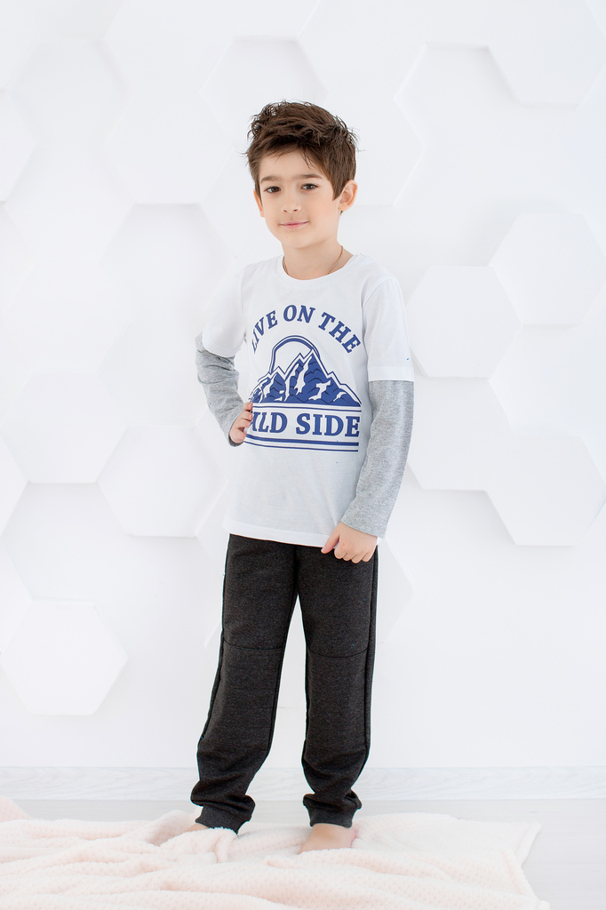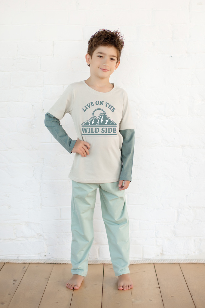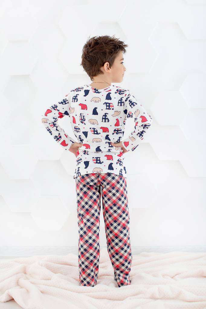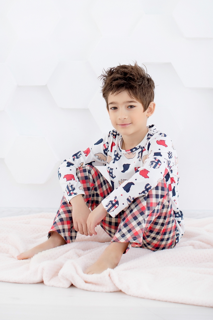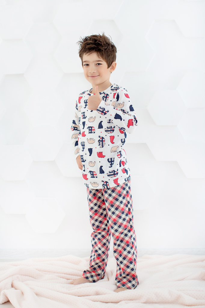 Ваш ребёнок непременно будет в восторнг от этой прелестной пижамы, в которой ему будет комфортно и уютно! Выполненная из мягкой хлопковой ткани она прекрасно садится по фигуре. Ткань - кулирное полотн... Показать описаниео 100% хлопок. Горловина изделия обрабатывается под окантовку. Характеристики: мягкая трикотажная ткань из хлопка; длинный рукав для дополнительного тепла; оригинальное цветовое решение; машинная стирка; 100% хлопок; держать вдали от огня.