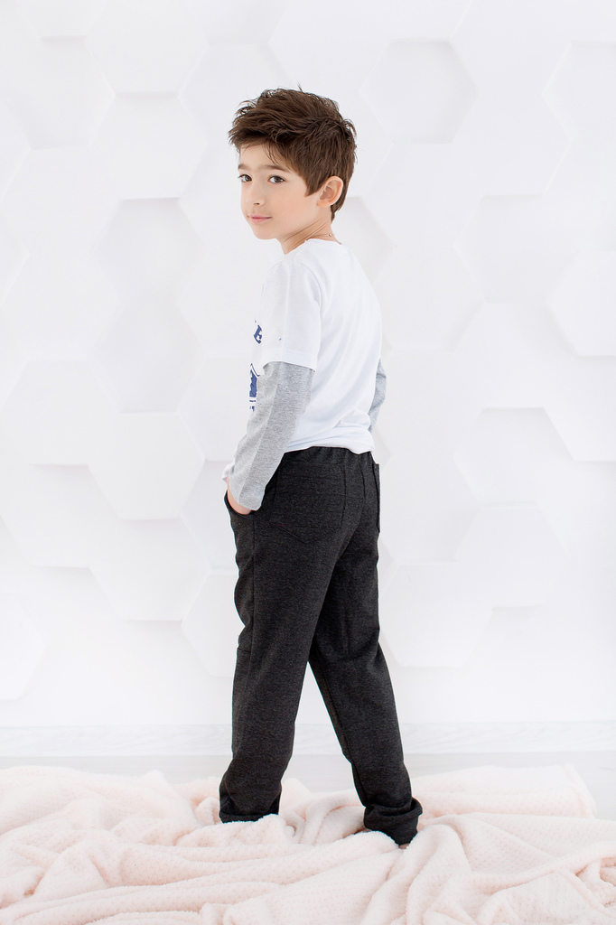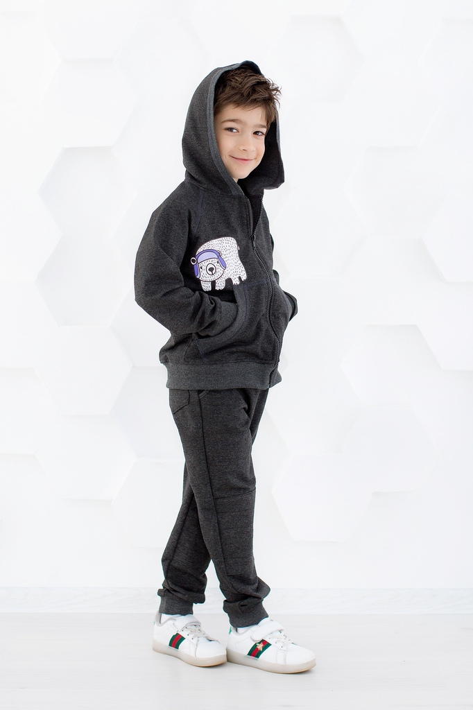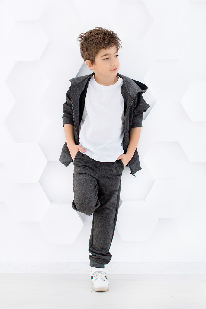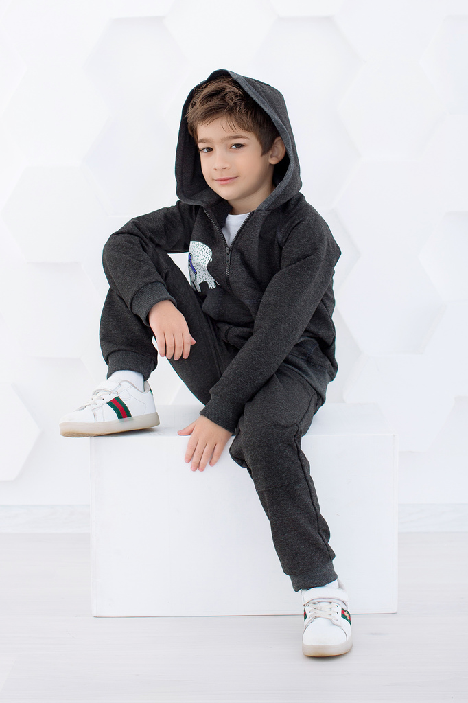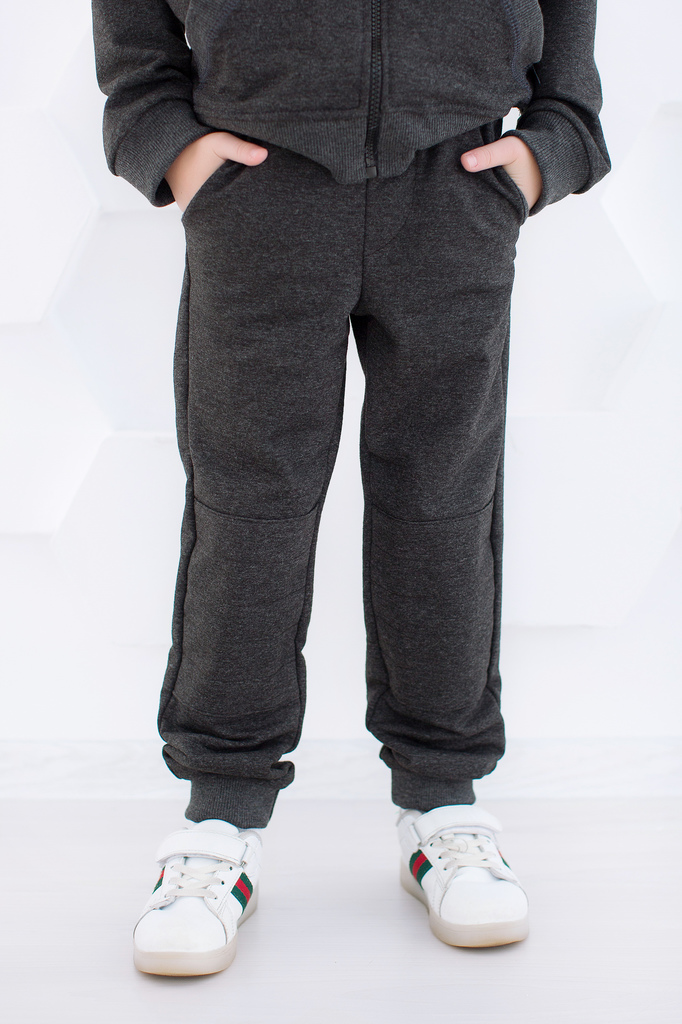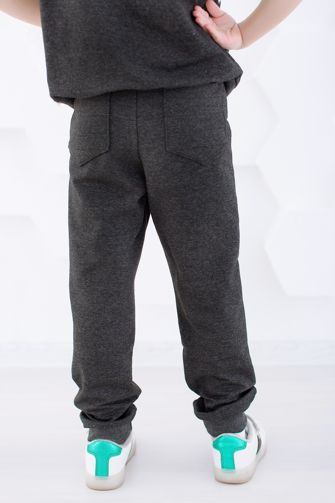 Спортивные брюки - полезная вещь в гардеробе малыша. Без них трудно представить подвижные игры детей. Наши спортивные брючки выполнены из практичной тёмно-серой ткани футера с лайкрой. Эластичные пояс... Показать описание и манжеты обеспечивают оптимальный комфорт и удобную посадку брюк на теле. В пояс вставлена киперная лента, посредством петлей, для улучшения посадки. Оригинальными и эффектными элементами являются двойные обстроченные вставки на колени и задние карманы изделия. Также модель имеет боковые карманы для более комфортного использования. Характеристики: спортивные брюки на каждый день; рифленые эластичне манжеты и пояс с завязками; боковые карманы; усиленные декоративные вставки на колени; мягкая хлопковая ткань с лайкрой; серый; машинная стирка; 80% хлопок, 15 % п/э, 5% лайкра.