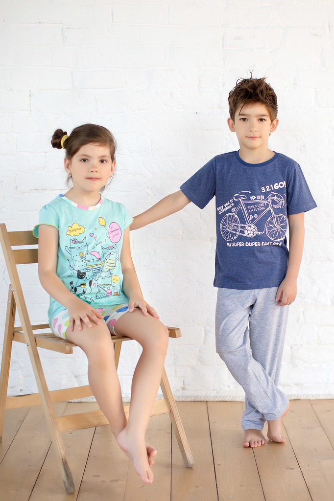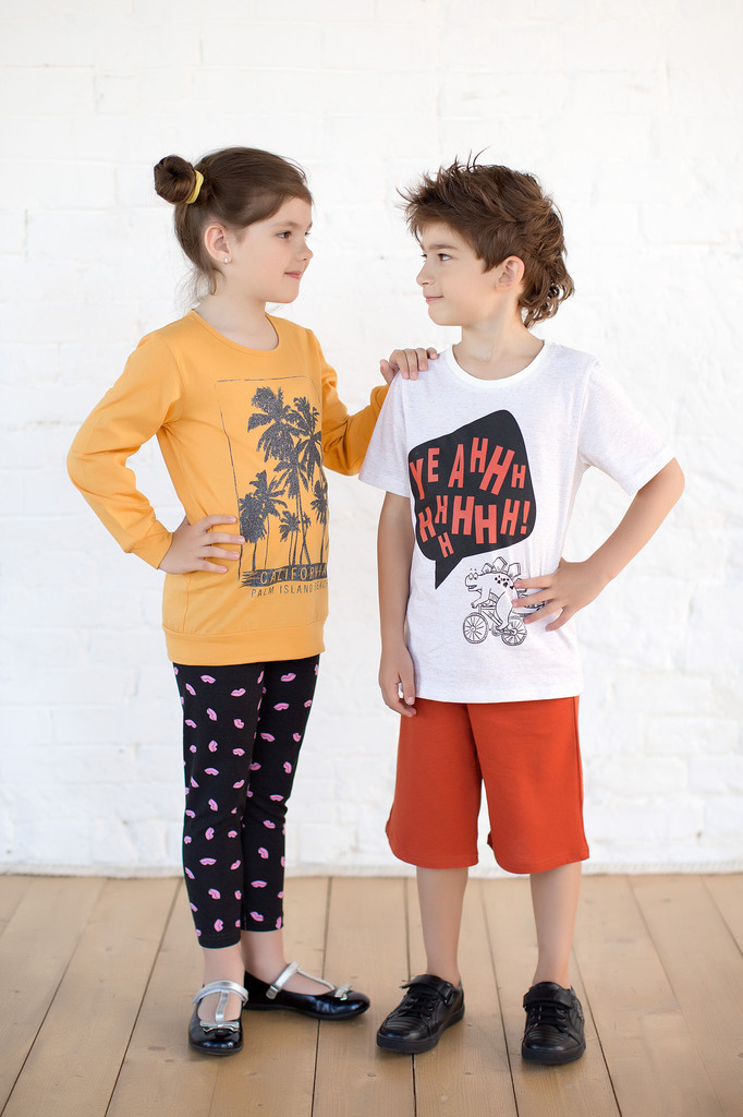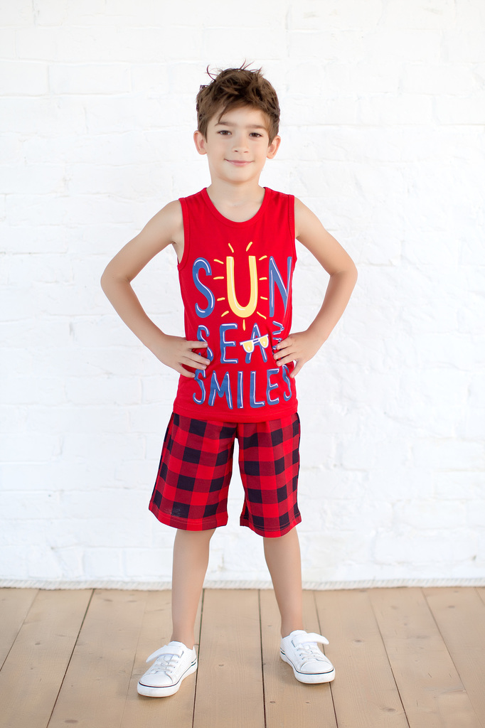 Костюм выполнен из мягкого хлопкового материала и состоит из майки и шорт. Данная модель отличается свободным кроем, не сковывающим движений, что особенно важно для комфортного времяпрепровождения. Ко... Показать описаниестюм отлично подходит для жаркого времени года и для дома в период отопления. Горловина и проймы верхнего изделия обрабатываются под окантовку. Майку украшает стилизованный принт Солнце, море и улыбки. Ткань - кулирная гладь 100% ХЛОПОК. Характеристики: выполнена из мягкого хлопка; эластичная горловина; короткий рукав; оригинальный принт; машинная стирка при 30c; 100% хлопок; держать вдали от огня.