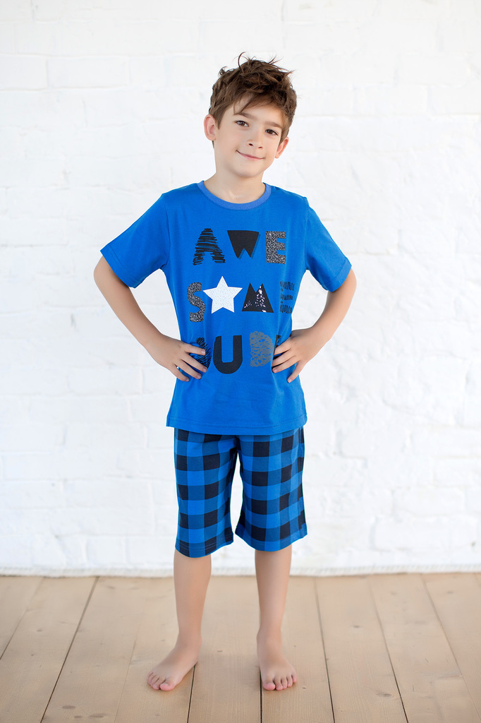 Костюм выполнен из мягкого хлопкового материала и состоит из футболки с коротким рукавом и шорт. Данная модель отличается свободным кроем, не сковывающим движений, что особенно важно для комфортного в... Показать описаниеремяпрепровождения. Костюм отлично подходит для жаркого времени года и для дома в период отопления. Горловина обработана под планку из эластичной ткани. Футболку украшает стилизованный принт. Ткань - кулирная гладь 100% ХЛОПОК. Характеристики: выполнена из мягкого хлопка; эластичная горловина; короткий рукав; оригинальный принт; машинная стирка при 30c; 100% хлопок; держать вдали от огня.