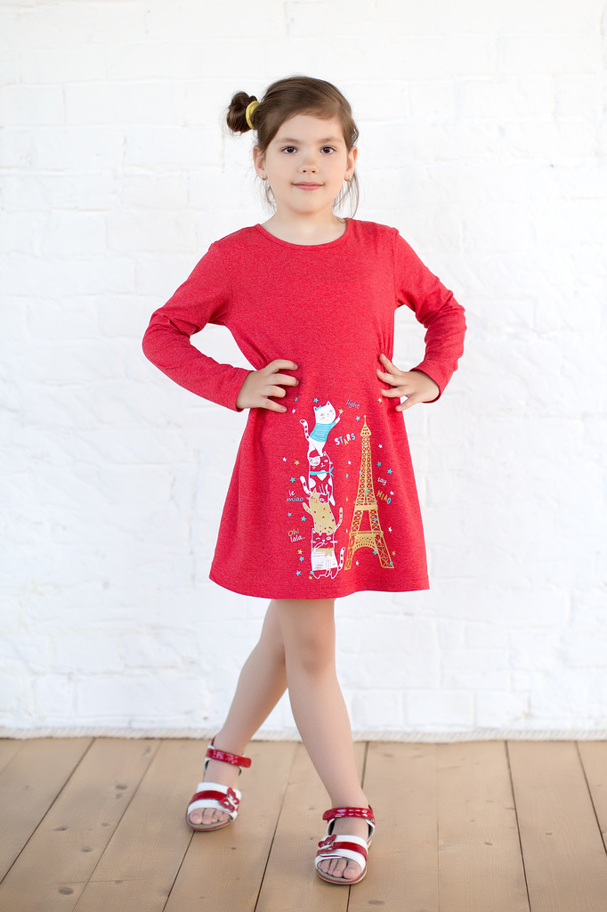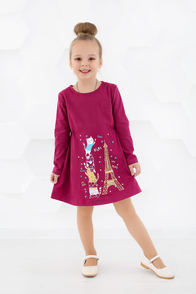 Ни один гардероб маленькой модницы не обходится без очаровательных платьев! Это хлопковое платье для девочки подходит как на каждый день, так и для особого случая. Длинный рукав согреет малышку в прох... Показать описаниеладный день, а мягкий хлопковый материал обеспечит оптимальный комфорт. Горловина обрабатывается под планкую. Сборка за счёт резинки на талии придаёт эффект зауженности. Яркий, оригинальный и блестящий принт; Длинный рукав; Мягкая ткань из хлопка; Машинная стирка; 100% хлопок; Держать вдали от огня.